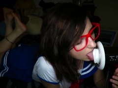Blonde Babe Licks and Swallows Her Roommate Thick Cock